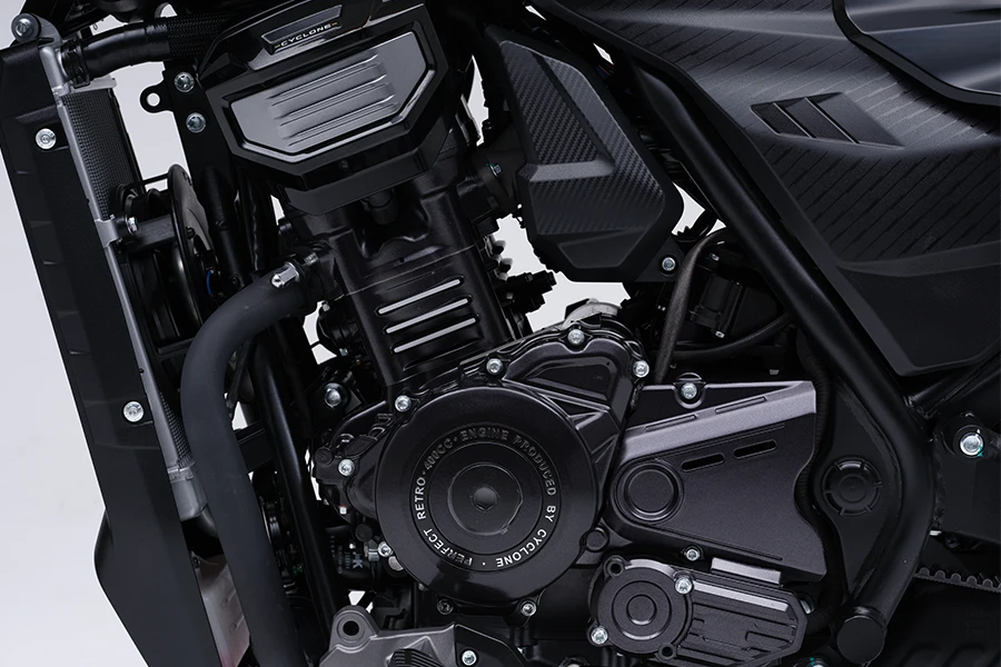 La AQS401 redefine la experiencia Custom. Su motor bicilíndrico de 401 cc y 45 CV entrega potencia constante y controlada, perfecta para disfrutar cada kilómetro con confianza.
