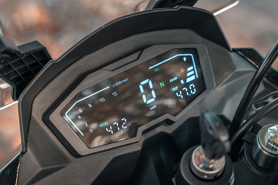 Con un motor de 12,64 CV con refrigeración aire, ofrece una respuesta ágil y eficiente, ideal para moverte con soltura por cualquier terreno. Sus llantas de radios de 19” delante y 17” detrás garantizan estabilidad en caminos irregulares, mientras el sistema de iluminación full LED y la pantalla digital LCD te conectan con el camino y con la moto como nunca antes.