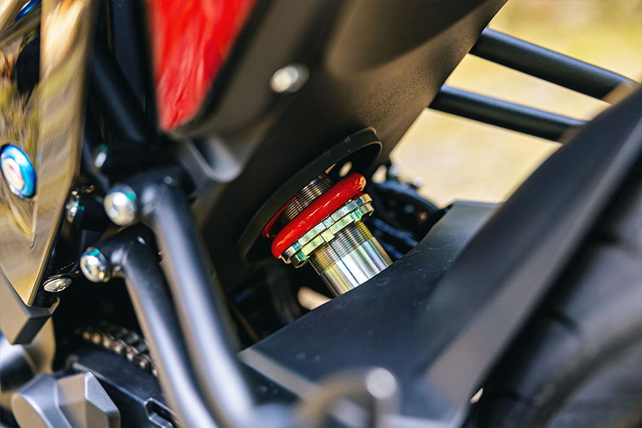 Suspensão traseiraAmortecedor único regulável por pré-carga